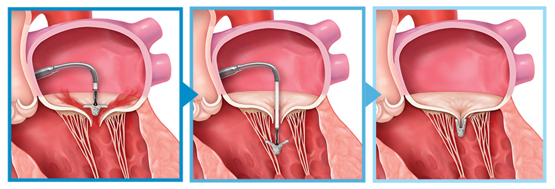 MRの低侵襲な治療法のオプションとして、経皮的僧帽弁接合不全修復術 (TMVr)があります。 もし医師が年齢や心不全の進み具合、その他身体所見により、外科手術が難しいと診断した場合、『経皮的僧帽弁接合不全修復術』といわれるカテーテルを使用した低侵襲な治療が選択可能かもしれません。